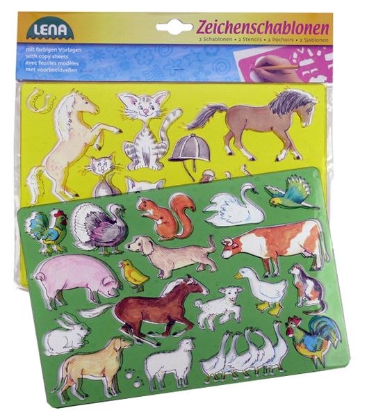 Kreslící šablony s motivem koní a koček. Balení obsahuje 2x šablonu o velikosti 27x23cm.