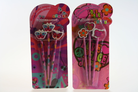 Balení obsahuje 3 tužky na jednom konci s gumou ve tvaru love velikost cca 18,5 cm. Rozměr balení cca 12 cm X 28 cm.Výrobek slouží k psacím účelům.